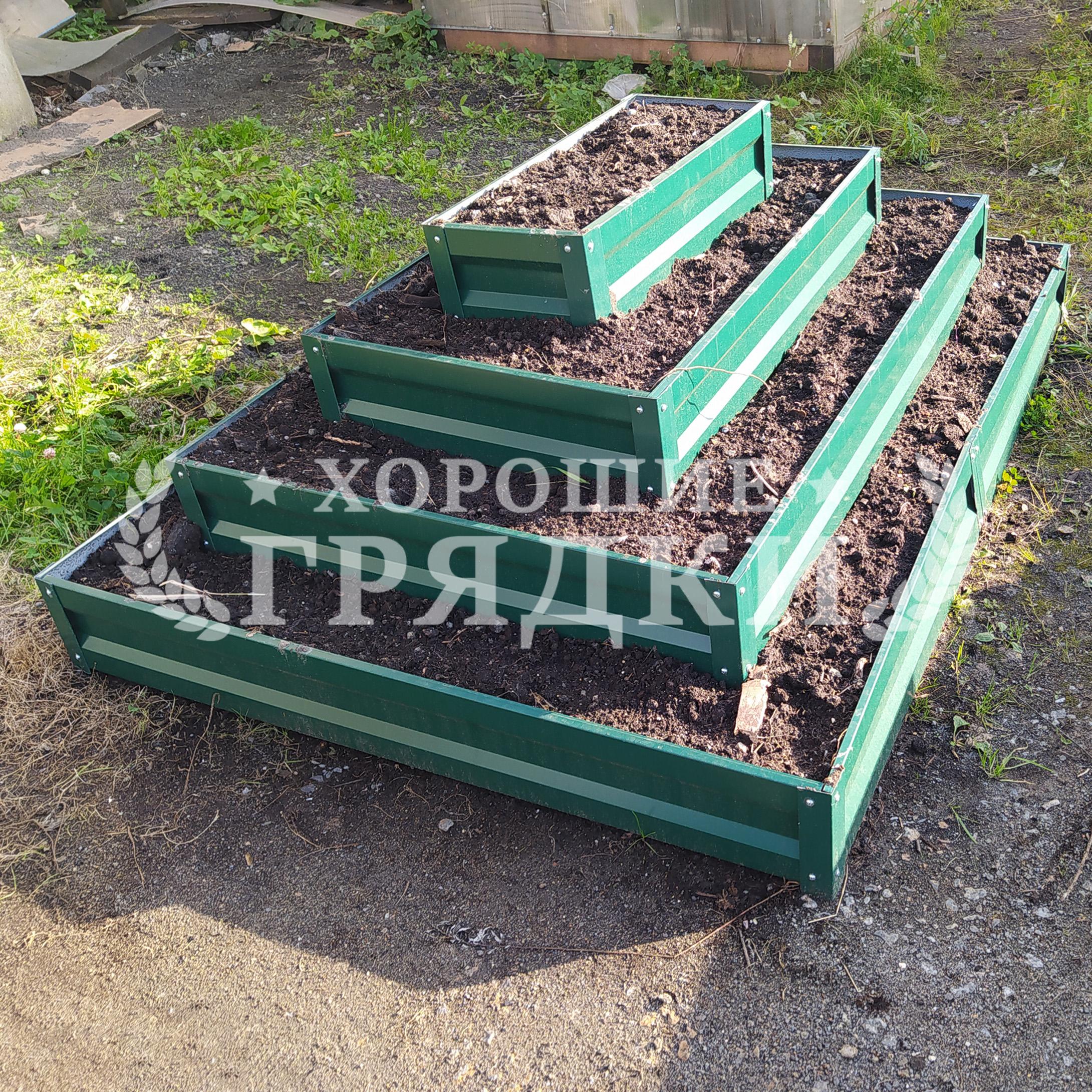 Клумба зеленая «Прямоугольная 4 яруса» 2х1.5м — 1.6х1.1м — 1.2х0.7м — 0.8х0.3м
